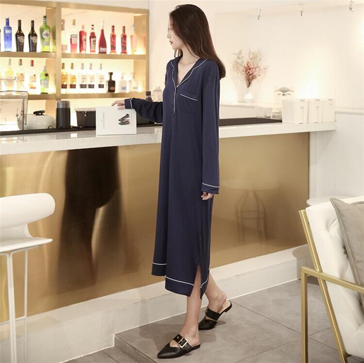 薄い 長袖 ラペル ロングスカート ルームウェア ゆったりする エレガント 気質 おしゃれな 大人気 シンプル