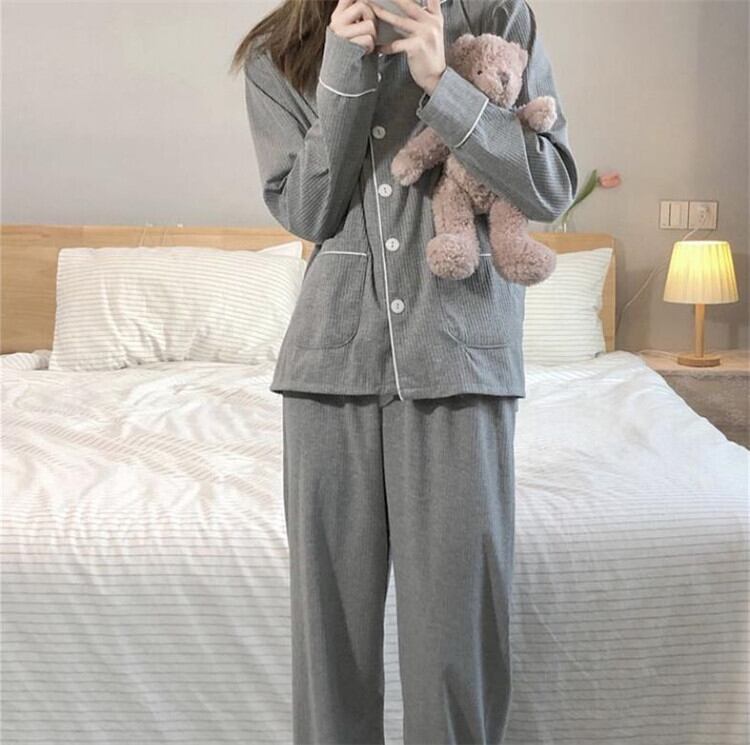シンプル パジャマ 長袖 カジュアル 屋外で着用可能 ホームサービス セット