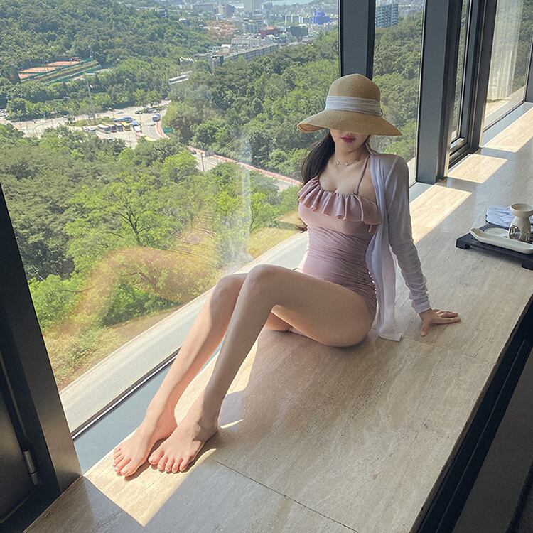 連体水着 オフショルダー スリム sweet系 フリル 学生 デザインセンス 温泉