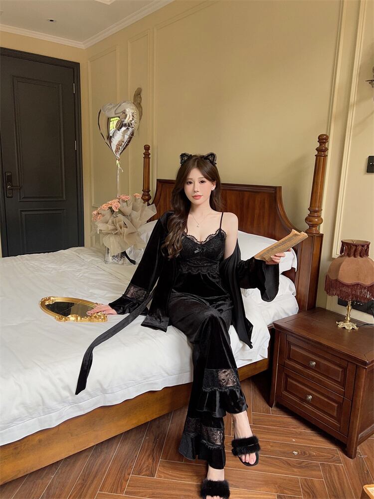 ガウン サスペンダー 快適である パジャマ スラックス 3点セット