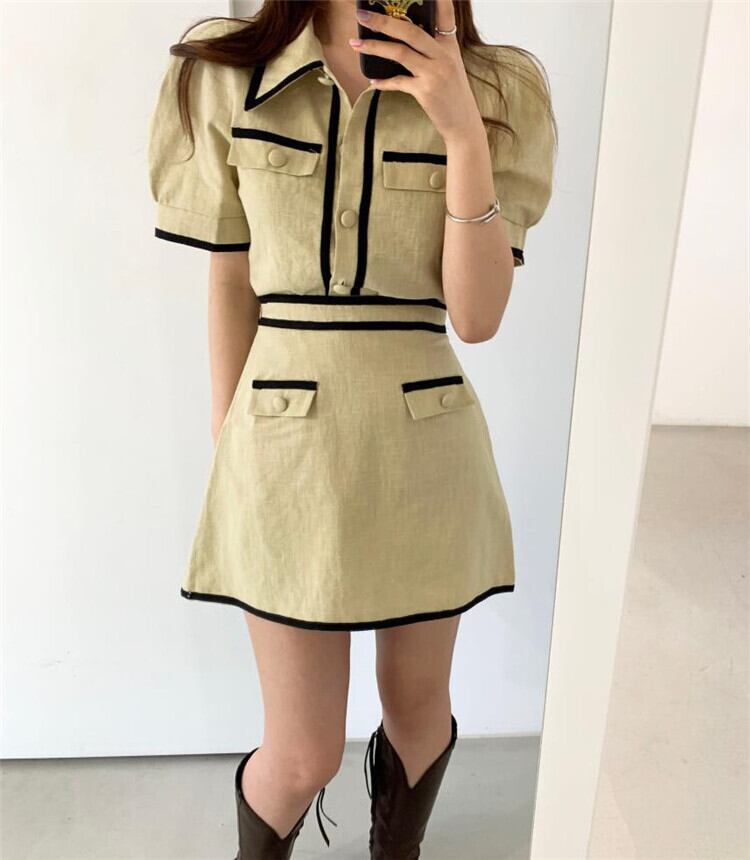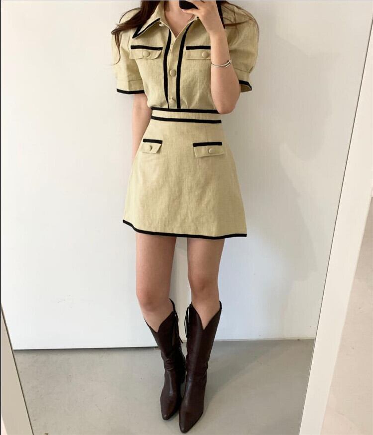 カラー:ブラック(トップス),カーキ(トップス),ブラック(スカート),カーキ(スカート)