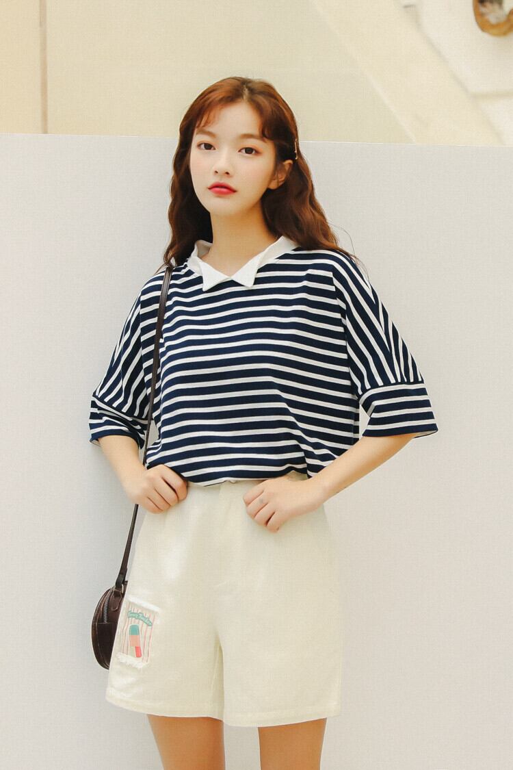 ⭐︎毎年の着られるボーダー襟付きTシャツ