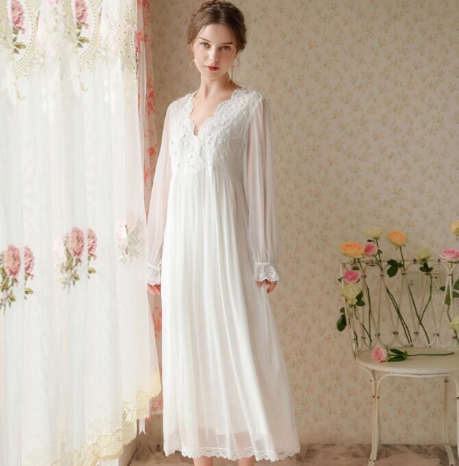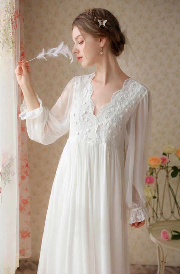 ネグリジェ 姫系 ロング丈 ネグリジェドレス ワンピースパジャマ 優雅 Vネック ハイウエスト ワンピース