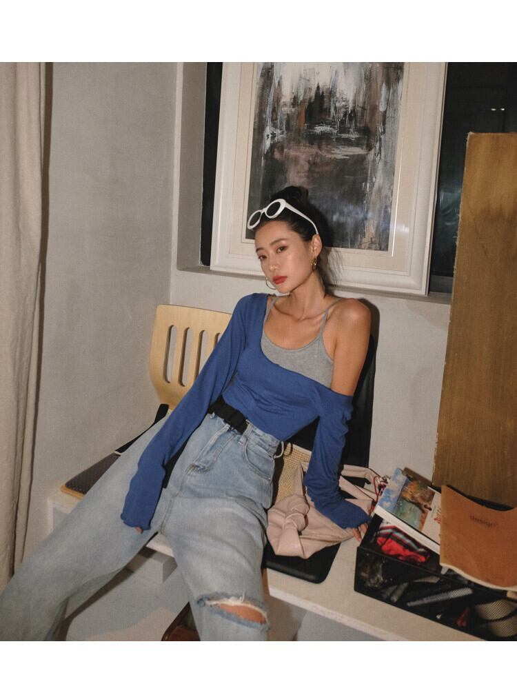 今っぽトレンド 2021 夏 新作 レトロ ゆったりする ワイドレッグ 非対称 破れ ジーンズ ハイウエスト 個性