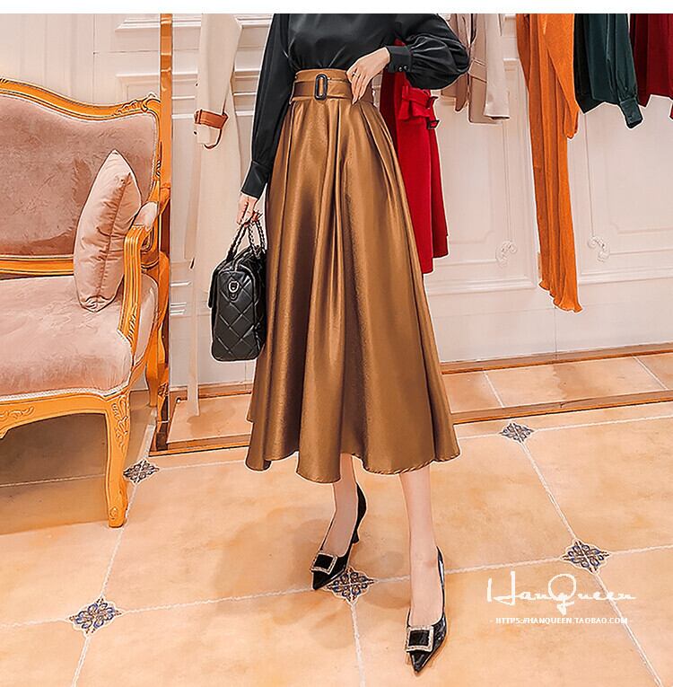 ⭐︎光沢感で高級感もあるウエストベルト付きのAラインスカート