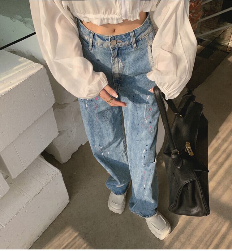 ⭐︎ペンキデザインが個性的で可愛い❤︎ゆったりワイドデニムパンツ