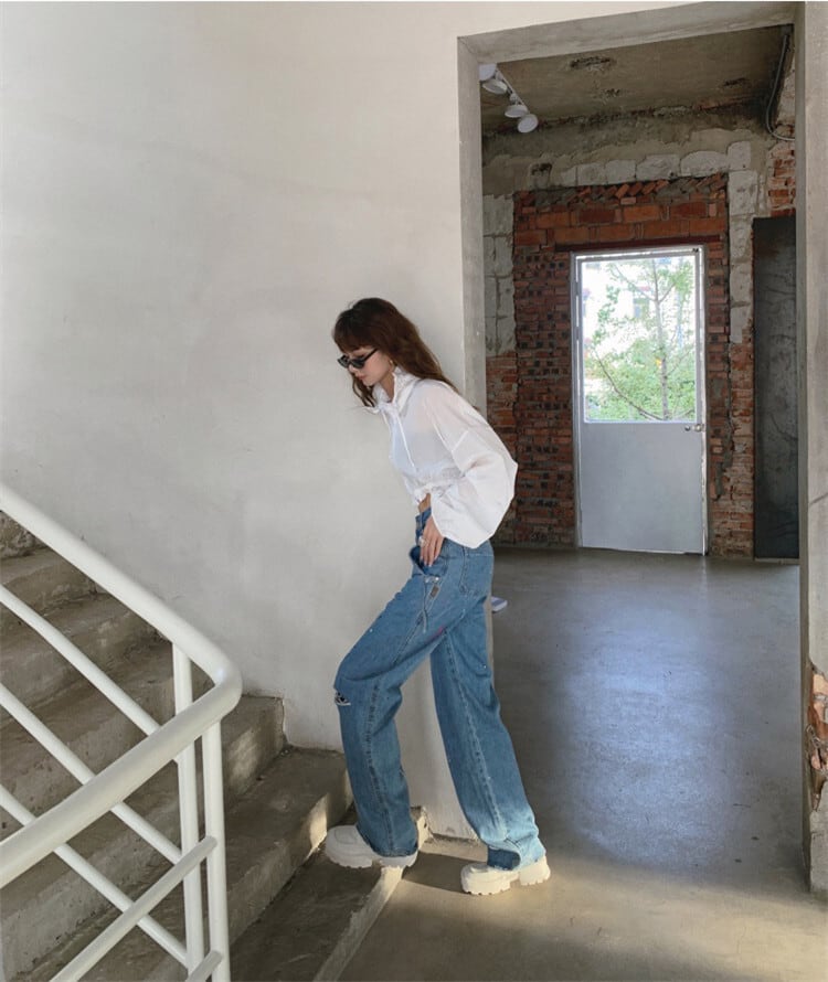 今シーズン大注目! ゆったりする 個性 不規則 ポケット デザイン 破れ デニムワイドパンツ カジュアル
