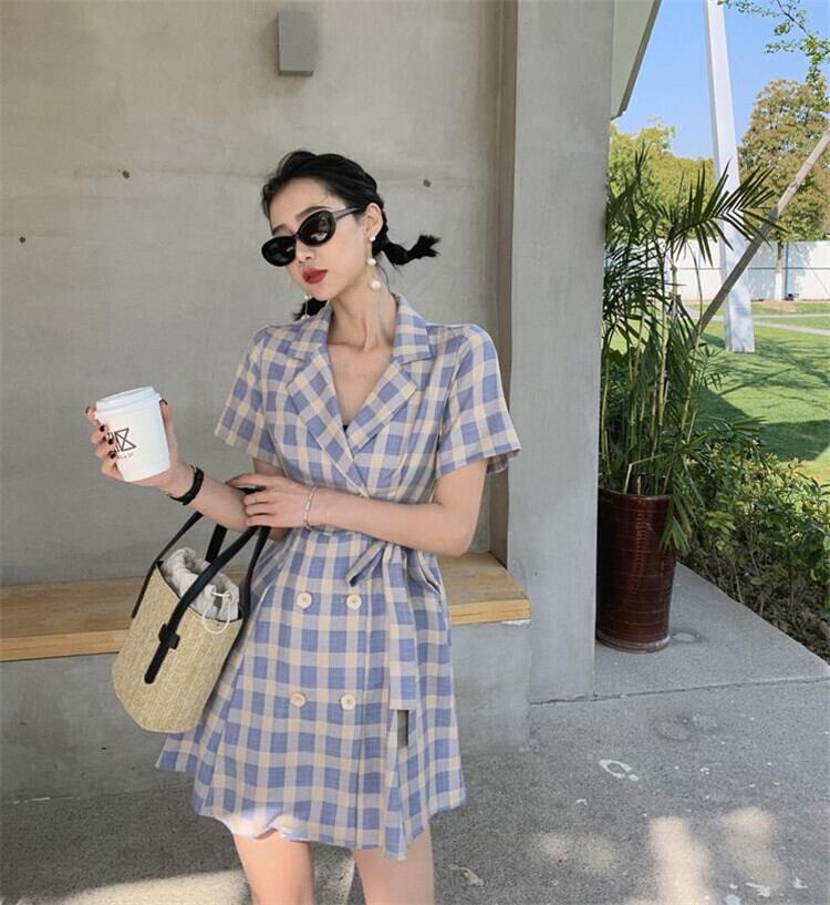 今だけの特別価格 宴会場 レトロリトルパープルサツマイモ スーツの襟 ワンビース スリムチェックパターン