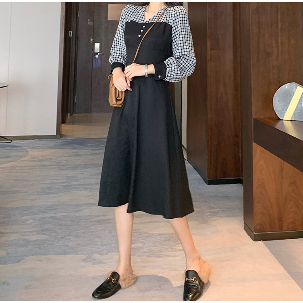 早い者勝ち チェック柄 ロングスカート エレガント 快適である 長袖 韓国語版