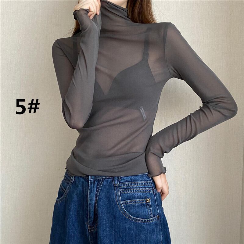 2024年新作 トップス レディース 長袖シャツ インナー レース メッシュトップス 透け感 ハイネック