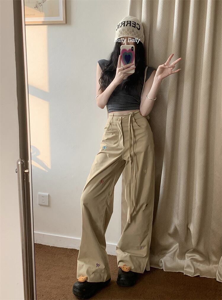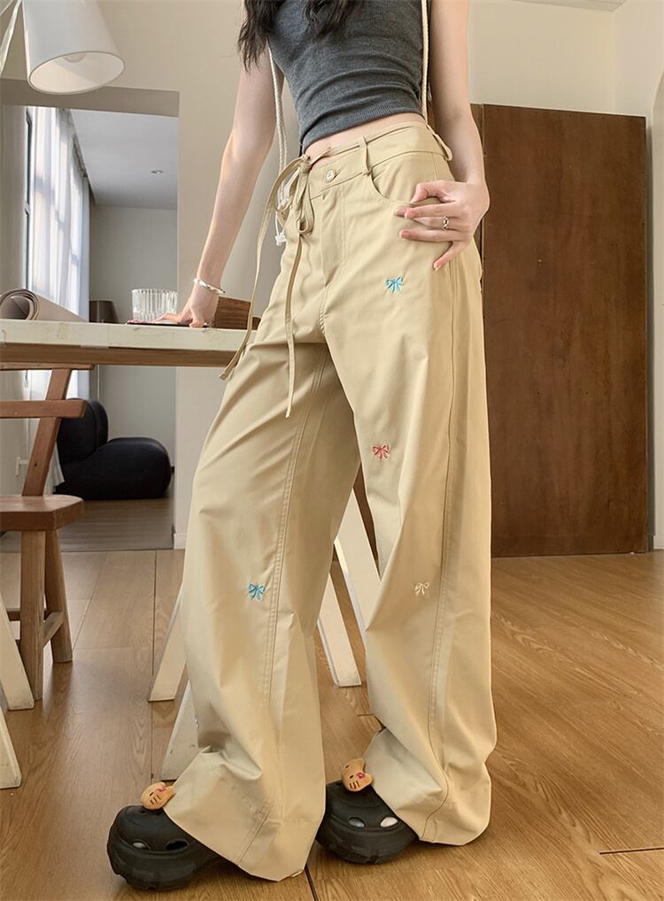 新しいスタイルを試す レディース 春 ハイウエスト ロングパンツ 蝶 刺繍 ワークパンツ ワイドパンツ