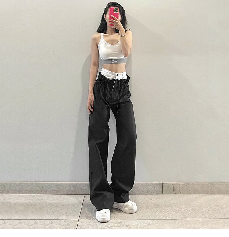 この1枚でコーデが変わる ハイウエスト スラックス 重ね着デザイン感 ストリート クール