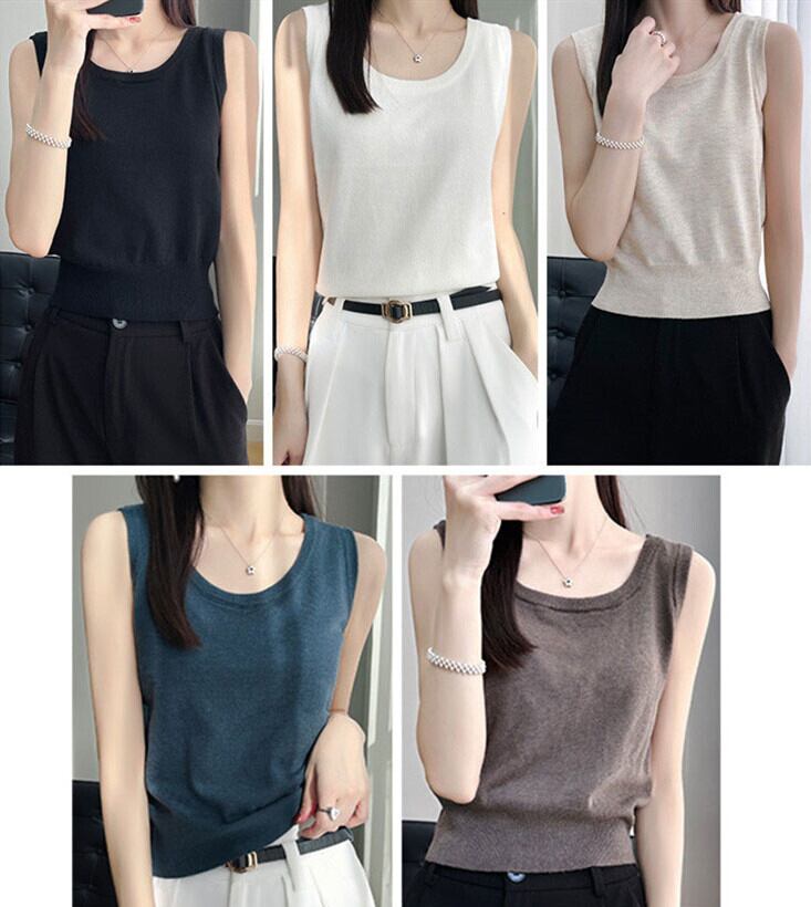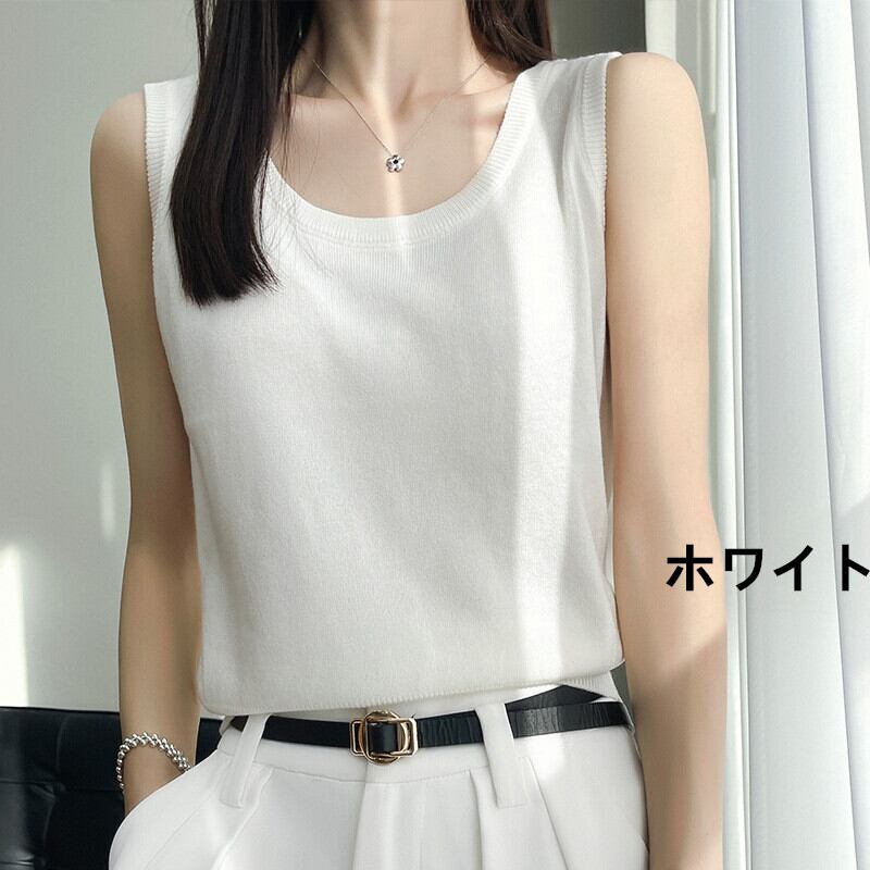 インナー ベスト ニット セーター ノースリーブ 無地 ゆったり レディース タンクトップ キャミソール