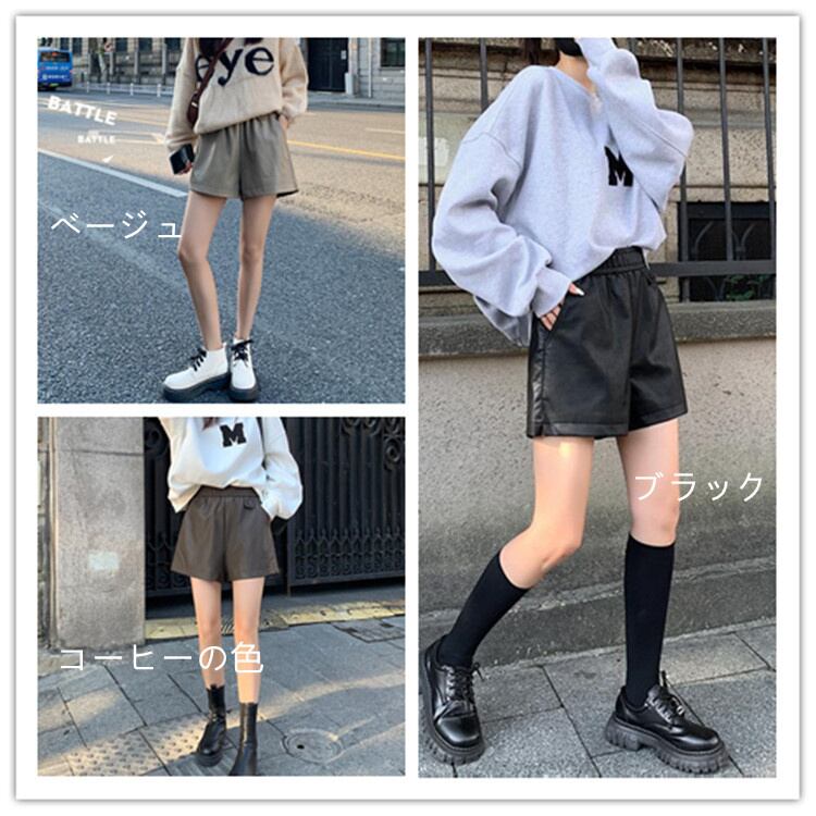 ⭐︎腿細見え♪革素材のカッコ良いショートパンツ
