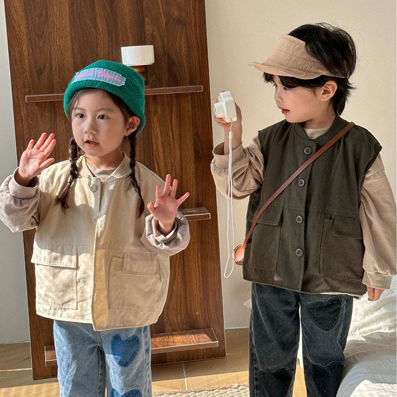 韓国風 春新作 オシャレ カジュアル キッズ ユニセックス トップ チョッキ ベスト ノースリープ 80-150 | Have Self-Confidence Every Day レディース・メンズファッション・キッズウェアの通販